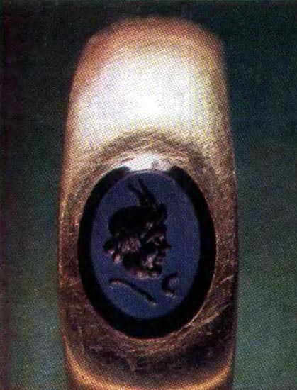 Пантикапей. Перстень с изображением головы Афины. III в. до н. э. Золото, гранат.