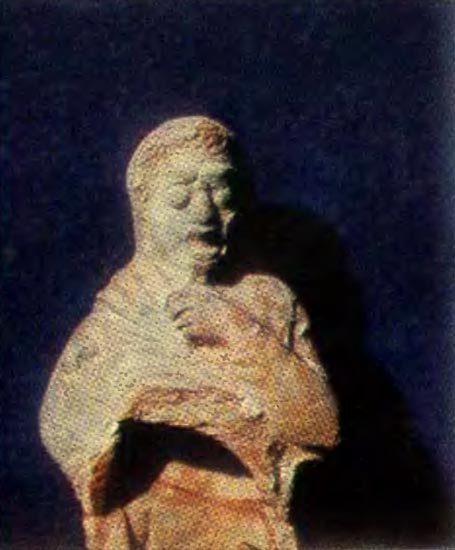 Пантикапей. Терракотовые статуэтки II–I вв. до н. э.: мальчик с гусем; мальчик с собакой.