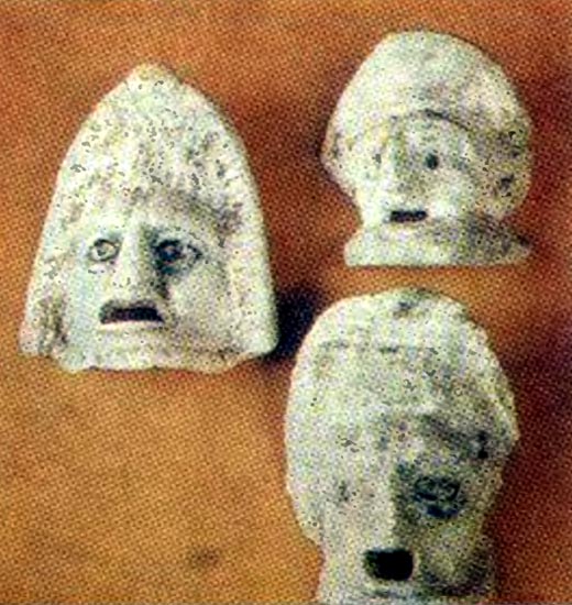 Пантикапей. Гипсовые трагические маски с остатками росписи. Украшение саркофага I–II вв. н. э.