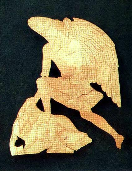 Уташ. Медуза. Гравировка на пластине слоновой кости. Сырцовый склеп IV в. до н. э.