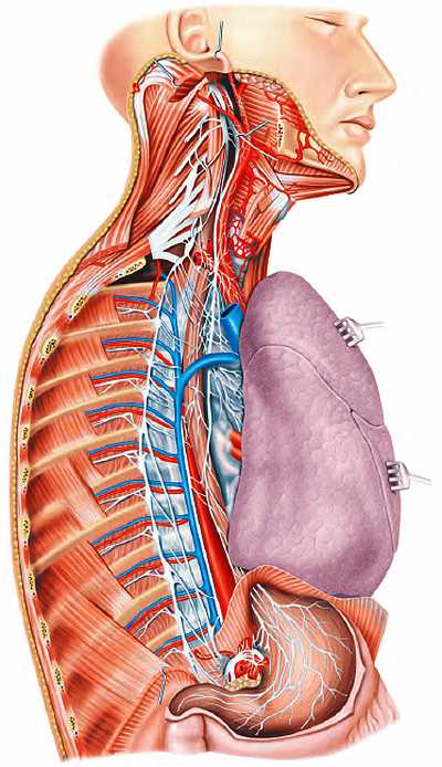 Данная иллюстрация демонстрирует сложность анатомического устройства внутренней среды организма, которая показывает, что в организме все едино и взаимосвязано. То есть нет отдельно существующих друг от друга позвонков, артерий, отдельно вен, нервов, мышц – есть единое целое.