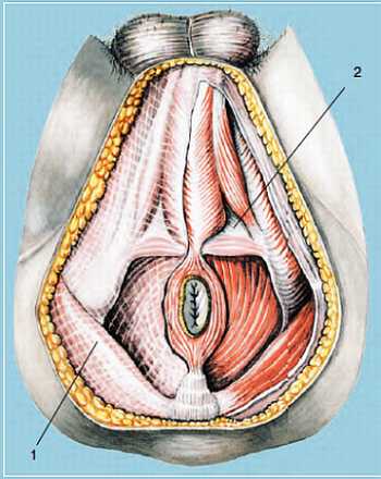 1 – урогенитальная диафрагма; 2 – тазовая диафрагма