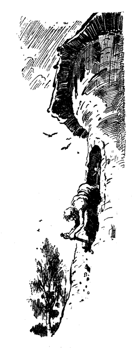 Витя откинулся и повис вниз головой, держась переплетенными ногами за решетку бойницы. Теперь, по крайней мере, у него были свободны обе руки. Он засунул кинжал в щелку над камнем. Мы стояли молча, разинув рты, и глядели вверх.