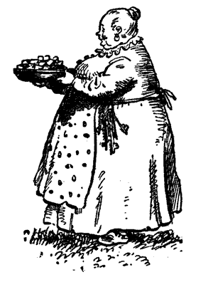 Из дома выкатился настоящий катышек. Такой маленькой кругленькой старушки я никогда не видывал; ну просто шарик, только что в платье и в фартуке.