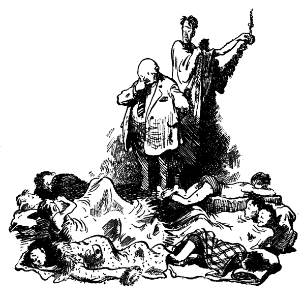 О Майкле мы позабыли. Пес этим воспользовался, незаметно освободился от ремешка и проник в первую комнату. Понюхав раскрытые рты спящих мальчиков, он перешел в следующую. Девочки разлеглись в два ряда, один ряд ближе к двери, другой ближе к окнам.