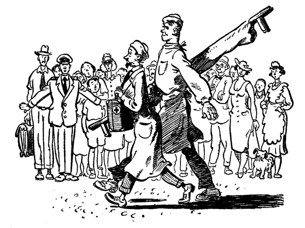 Я чуть-чуть один глаз приоткрыл и опять закрыл – пускай думают, что я умер. Доктор мне рубашку кверху и изо всей силы как начал кулаком тискать и мять живот. Ну в точности как моя мама, когда сдобное тесто в квашне месит. Сперва было ужасно больно, а потом только щекотно. Живот стал проходить. И я опять чуть-чуть один глаз открыл.