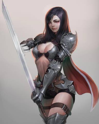 С огромным мечом, лёгкой броне на плечах, руках, талии и ногах, её тело было практически полностью открыто любым опасностям. Аидра была похожа на персонажа какой-нибудь корейской ММО, а тот бронелифчик что не мог сдержать объемные буфера, не казался достаточной защитой для сохранения жизни… Но смотрелся очень эффектно как и невыносимо короткая юбка, из под которой только чудом не были видны трусики… Чтоб меня здесь гром убил, если я не соглашусь продать свою душу в замен на то, чтобы госпожа села мне на лицо прямо здесь!