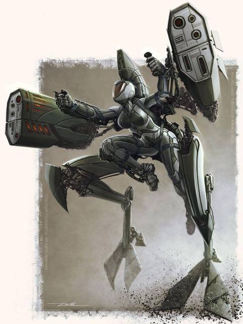 Честно, я не верил что нас вообще пустят в тот район и стража повяжет нас ещё на подходе… и как оказалось – не зря так думал. Патрули усилились кратно и если бы не шкерились по подворотням, то давно огребли бы от одного из них. Но, всю дорогу, которая заняла как раз почти два часа, мы были начеку и пусть не без труда, но смогли избежать прямого контакта со стражей, но вот когда перед нами выросла белоснежная стена высотой метров десять, отделяющая обитель грязной челяди от жилищ элиты столичного общества, показались первые серьезные проблемы. Даже несущая караул на внешних стенах города стража, выглядела менее готовой к войне чем эти бравые хлопцы обряженные, внимание, в настоящие футуристические экзоскелеты на курьих ножках, с манипуляторами, на концах которых виднелись не менее футуристические пушки!