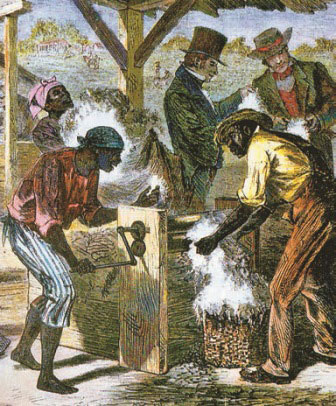 В южной части новых земель преобладали большие плантации – крупные земельные участки, занятые той или иной сельскохозяйственной культурой. На них использовался труд негров-рабов. Такие же плантации давно существовали и в старых колониях американского Юга, теперь ставших штатами. Рабовладельцы-плантаторы, в сущности, были типичными капиталистическими хозяевами. Но эксплуатировали они не труд наемных рабочих, а исключительно дешевый (почти бесплатный) труд негров-рабов. Конечно, сам факт содержания в рабстве сотен тысяч негров заслуживал решительного осуждения. Против рабства выступали и многие белые американцы. Число их росло, и уже в 1860-е гг. споры по проблеме рабства привели к серьезнейшему внутреннему конфликту.