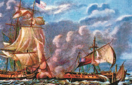 Американский корабль «Конституция» атакует британский корабль «Ява». 1812 г.
