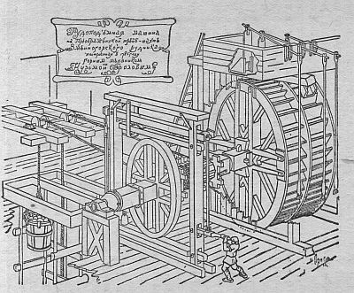 Рудоподъемная машина, построенная Кузьмой Фроловым в 1785 году.
