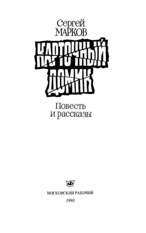 В книгу московского прозаика Сергея Маркова вошли повесть «Карточный домик» и рассказы.