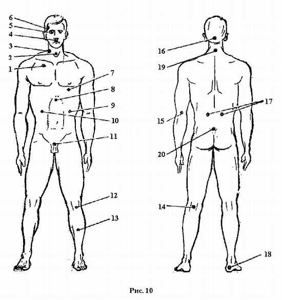 7. Область сердца ∙ Резкая боль, потеря сознания