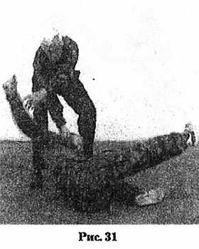 Опрокинув противника, продолжаем осуществлять управление его телом через точки контакта (рис. 31) и подготавливаем завершающий удар.