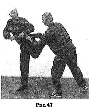 Действие данного удара усиливает опрокидывающий момент нападающего (рис. 97)