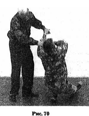 Путем непрерывного комплексного силового и моментного воздействия приводим биомеханическую конструкцию противника в состояние начала нарушения устойчивости (рис. 70), при этом правой рукой проводим дополнительные болевые воздействия.