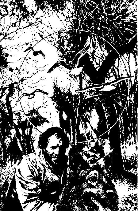 Джон, испуганно таращивший на нас глаза со свисающего с потолка каната, на котором раскачивался, прыгнул Лоусону на плечо и прижался к его голове, умоляюще щебеча.