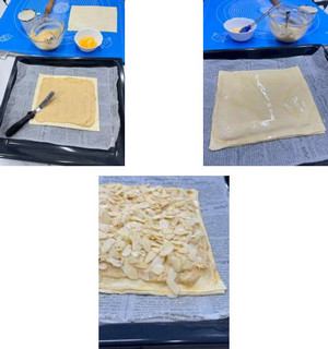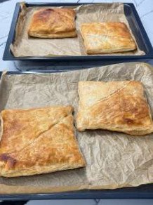 6. На два противня выложить 4 квадрата теста, выпекать в нагретой духовке 200 гр., 20-25 минут.