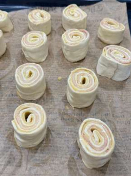 7. Улитки выложить на противень, застеленный бумагой для выпечки.