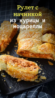 3. Тесто раскатать в прямоугольник 25х50 см, распределить по тесту всю начинку, свернуть в рулет.