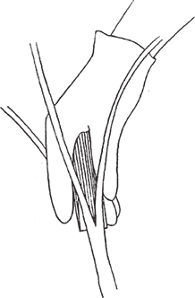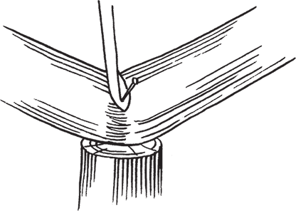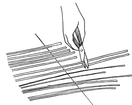 Рис. 24. Удаление тонкой части верхушки ивового прута