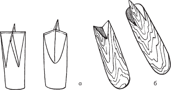 Рис. 29. Спиливание клиновидных сегментов: а – I этап; б – II этап