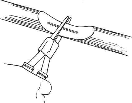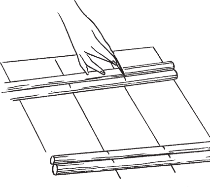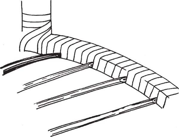 Рис. 46. Крепление двух тонких прутиков вдоль задней внутренней части сиденья