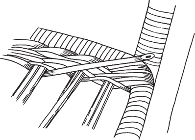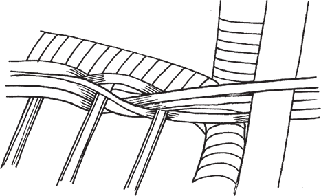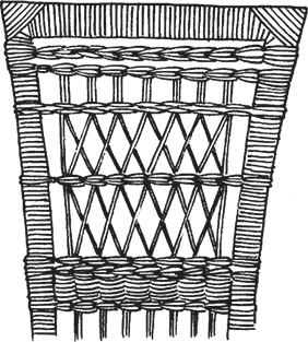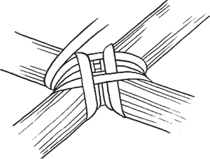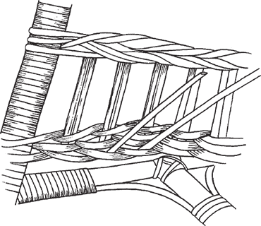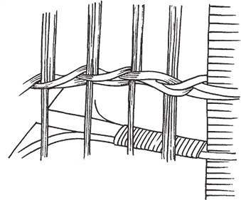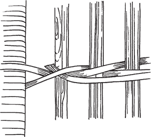 Рис. 57. Фиксация стоячков веревочкой, сплетенной из 3 прутьев