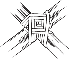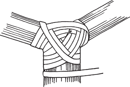 Рис. 47. Плетение «звезды» на соединении деталей нижней крестовины каркаса
