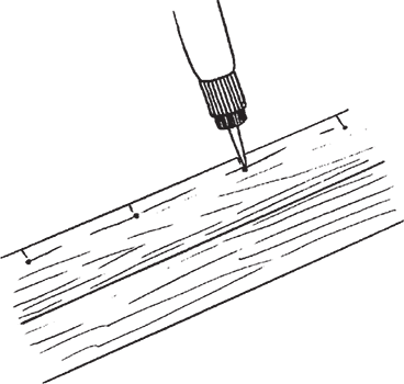 Разметка верхней поперечной палки спинкиС помощью трехгранного шила на верхней поперечной палке спинки наметьте отверстия (рис. 49). Расстояние между ними составляет 40 мм, а сверлить следует на глубину 15 мм.