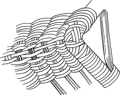 Рис. 52. Оплетка поперечины спинки от оплетенного угла