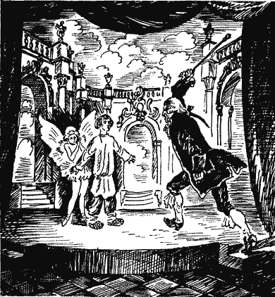 Неприятно стало Митьке, спрятал опять голову. Но в это время за стеной послышались шорохи. Потом с шумом отворилась дверь. Глянул Митька: в зал вошел управляющий. Сел в кресло, хлопнул в ладоши, и занавес тотчас открылся.
