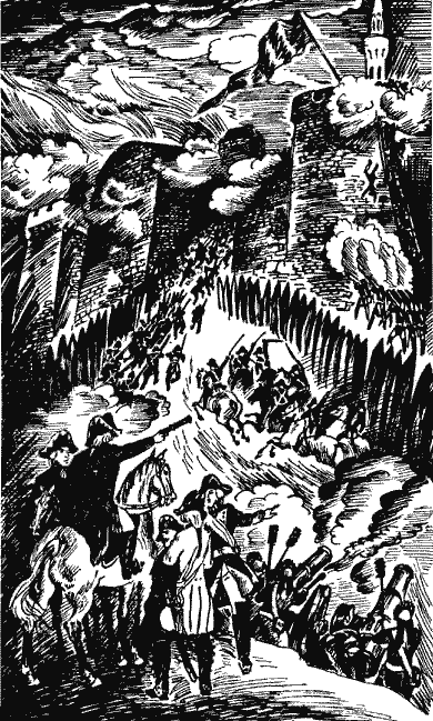 Шла стрельба. Над крепостью поднимался дым. На стене, один к одному, словно воробьи на изгороди, сидели турки. А вокруг крепости – и прямо перед собой, и слева, и справа, куда хватал глаз, – видел Митька, как двигалось, как колыхалось и плескалось со всех сторон огромное солдатское море. И казалось Митьке, что это вовсе не солдаты и Измаил не крепость, а гудит перед ним, перекатывается и воет огромный пчелиный рой.