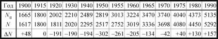 К нам ближе всего мировые войны XX в. (табл. 8.1). В современной истории первую и вторую мировую войны принято рассматривать как одно крупное событие. На рис.7.2 показано поведение мировой демографической системы от 1900 до 1980г., когда она вернулась на прежнюю траекторию роста, практически за 20 лет компенсировав потери на 10% за 40 лет войн. Подчеркнем, что за это время население Земли удвоилось. В этом соотношении самого крупного по своим абсолютным масштабом катаклизма видно, насколько постоянен и неотвратим процесс глобального роста человечества, когда потери в отдельных странах не отражают мирового процесса развития.