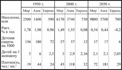 Таблица 8.2 Динамика населения мира, Азии и Европы