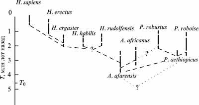 Рис. 4.1 Филогенетическая схема эволюции гоминид и антропогенез