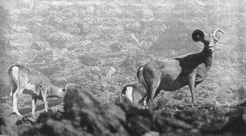 Примерно через месяц такого питания снежные бараны восстанавливают свои силы после зимы и умеряют кормовой пыл: пасутся в основном на зорях, уходя от жары и гнуса на день в скалы, на бодрящие ветры.