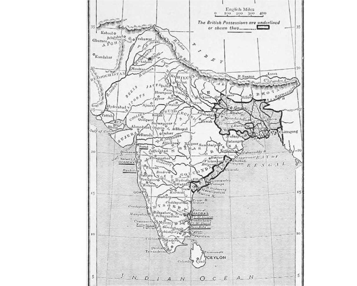 Владения англичан в Индии на 1767 г.