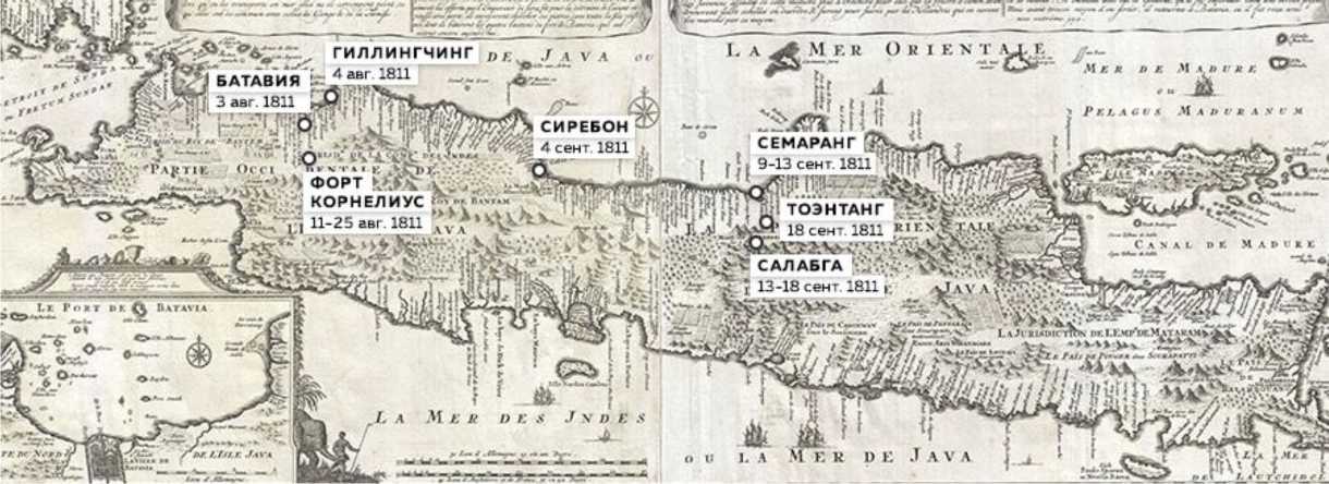 Карта военной компании 1811 г. на острове Ява.