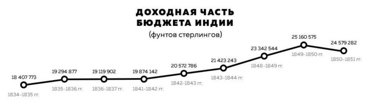 А теперь о самом важном, о деньгах. На слушаниях в парламенте в 1852 году депутаты предметно рассмотрели доходную часть бюджета Индии с 1834 года.
