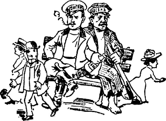 До каких курьезных нелепостей доходит у нас наша бдительная опекунша-полиция! Если извозчик везет троих седоков – городовые сейчас же хватаются за свои книги судеб и записывают № бляхи, что влечет за собой истечение из извозчичьего кармана трех рублей. Между тем, купчина-собственник на своей лошади может везти хоть кучу людей и никто не посмеет вмешиваться. Другая ерунда: – по воскресным дням после 5 часов вечера нигде нельзя купить спичек. Мелочные открыты, спички в них есть, а купить нельзя: воспрещено.
