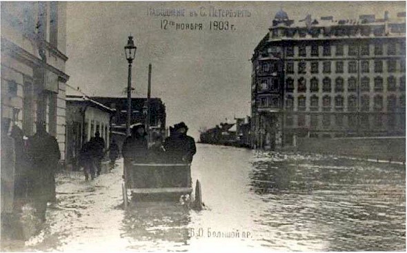 По Английскому проспекту плавали на лодках; жители Коломны, Васильевского острова и др. мест голодали до двух часов дня, так как выбраться из домов не было возможности. Несмотря на ледяную воду и холод, многие, не имея возможности добраться до домов, брели по пояс в воде; везде, где было возможно, полиция расставила ломовых извозчиков и установила таксу за перевоз через улицу – по две копейки с человека; в прошлое наводнение эти молодцы драли за такой перевоз на углу Екатерингофского и Садовой по 15 коп., а дальше, в глубине Коломны, по рублю и по полтора.