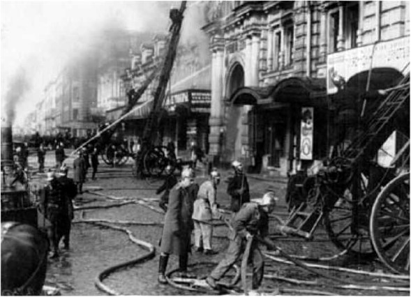 20 марта.Сегодня газеты насчитывают 12 жертв вчерашнего пожара, но пока не разыскано еще много приказчиков сгоревших складов – Клочкова и «Проводник». Пожар длился всю ночь; дежурная часть тушила его еще утром. Вчера и сегодня в пожарном отношении какие-то фатальные дни; иду нынче по улице Гоголя и вижу, что в доме на углу Гороховой выбиты во втором этаже стекла; читаю закопченную и скорчившуюся с одного края вывеску: «Редакция газеты «Знамя»» [84]84