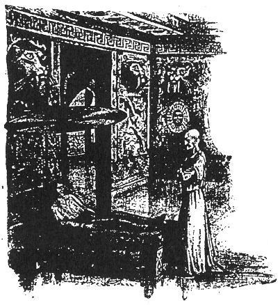Не в силах переносить дальше неподвижный взгляд гиперборея, геолог нервно шевельнулся на постели. Затем приподнялся и сел, с неудержимым желанием заговорить. В тот же миг старик вышел из задумчивости. Глаза засветились сильным волнением. И он поспешно вышел из комнаты. Вместо него в комнату неслышно проскользнули трое гибких, как юноши, людей. Вся одежда их состояла из короткого, от пояса до колен, зеленого трико. В руках они несли нечто в роде ручного катафалка или паланкина.