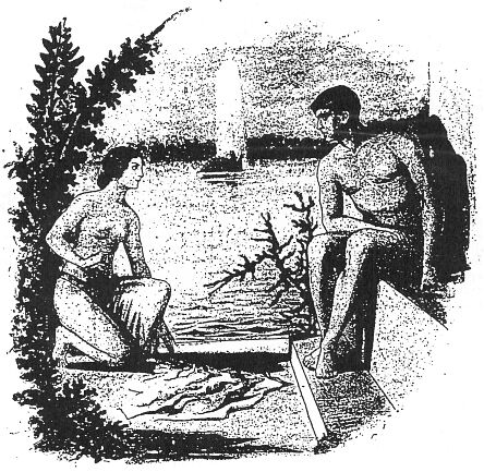 Наконец, инженер увидел над собой небо. Оно так поразительно напоминало надземную лазурь ясного летнего дня, что Игорин мысленно перенесся туда. Рокочущие по камешкам ручьи, озера, поросшие с берегов аиром, зеленые холмы, ровная полоска леса за ними, были раскинуты под голубым небом в духе истинного наземного пейзажа. И солнце было, хотя и не такое живительное, лучезарное. Великое искусство подземных обитателей, должно быть, хранило в этом уголке память о подлунной прародине.