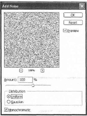 Выполните команду Filler | Noise | Add Noise (Фильтр | Шум | Добавить шум) и залайте значении, как на рис. 12.3.