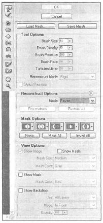 Для придания большей яркости измените режим смешивания слоя с полосками на Vivid Light (Яркий цвет). Выполните команду Filter | Liquify (Фильтр | Жидкий) (рис. 12.5—12.6).