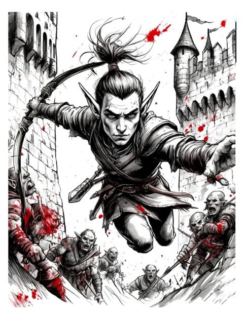 При этом сам эльф двигался с кошачьей грацией плавными движениями, прыгая по зубцам и бойницам, как белочка.