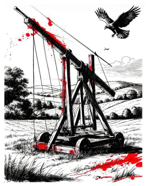 Кладка стены трещит, камни летят вниз, щиты дрожат, как листья на ветру. Требушет вкладывает в стену каменные ядра, каждое с грохотом, с криком, с обещанием конца, а таран отбивает свой пугающий ритм.