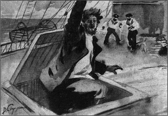 Вдруг до слуха капитана долетел дикий, нечеловеческий вопль, торопливый топот ног… Он оглянулся. На палубу выскочил один из пассажиров, огромного роста, заросший почти до самых глаз рыжей бородою. Рубашка была на нем вся в клочьях, ноги босые, в широко раскрытых серых глазах горел огонь безумия.